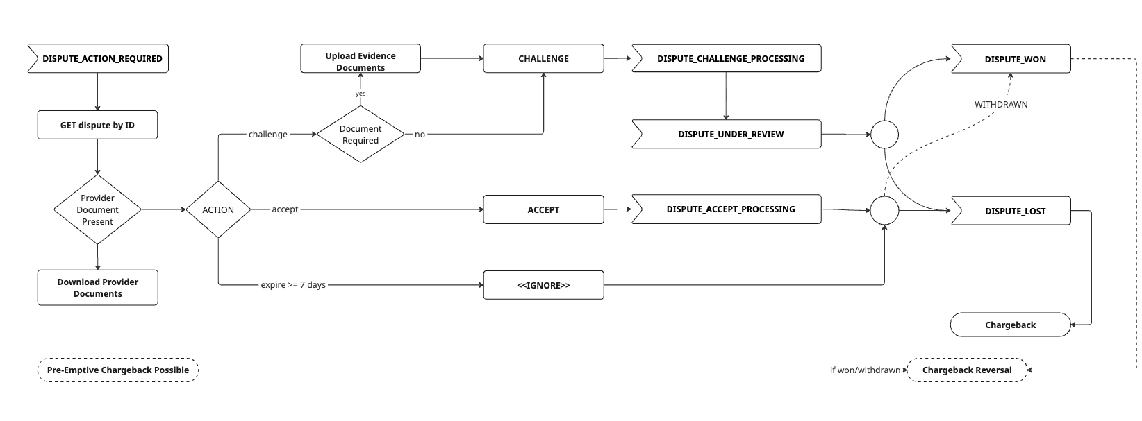 DISPUTE_CHALLENGE_PROCESSINGDISPUTE_UNDER_REVIEWDISPUTE_ACCEPT_PROCESSINGDISPUTE_WONDISPUTE_LOST