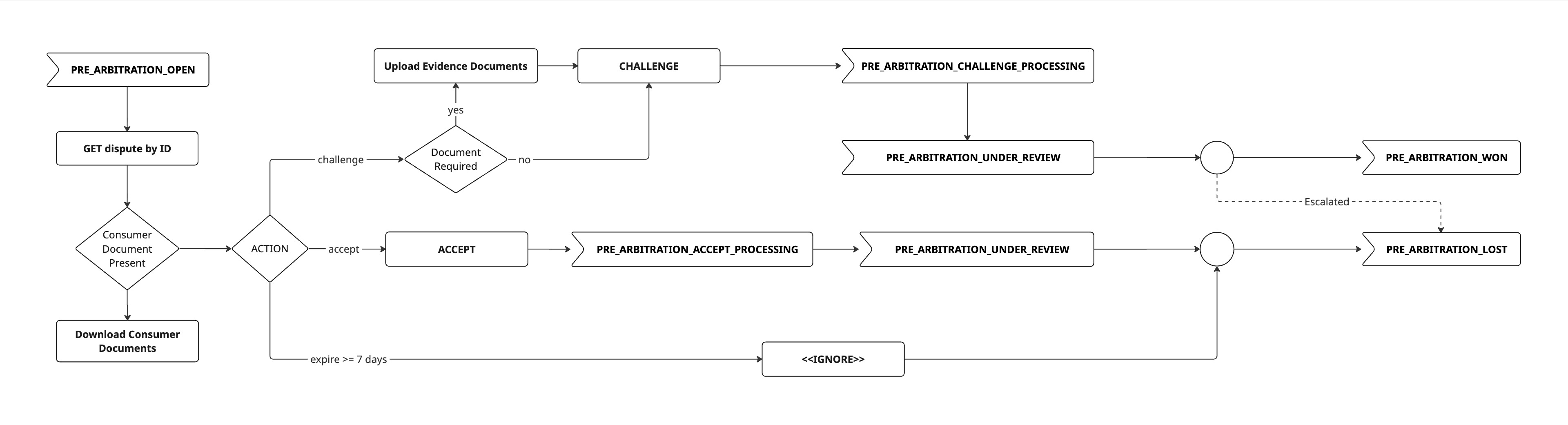 This guide walks you through the pre-arbitration lifecycle and resolution flow.