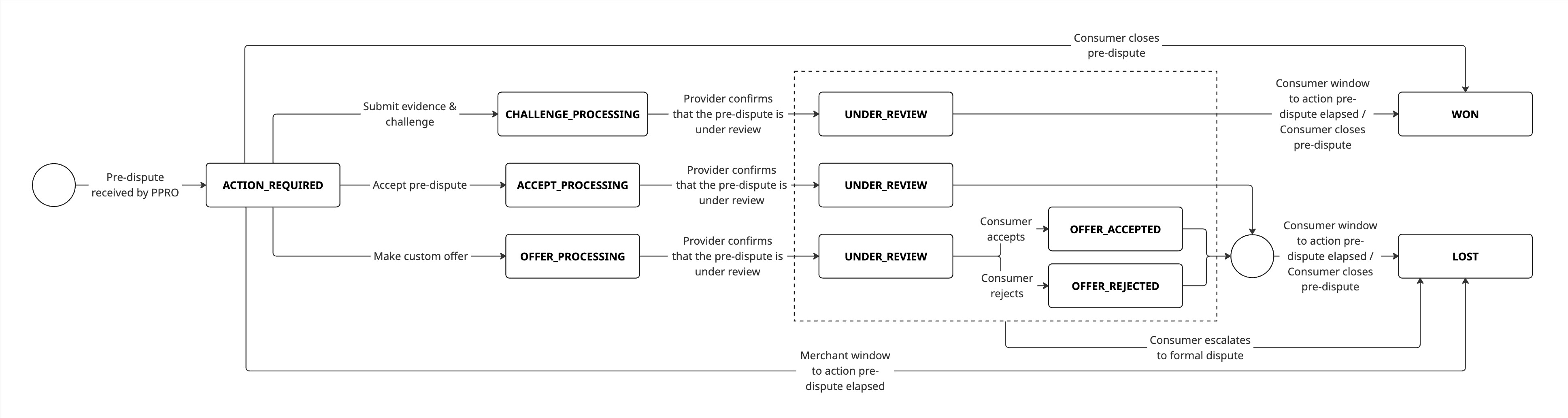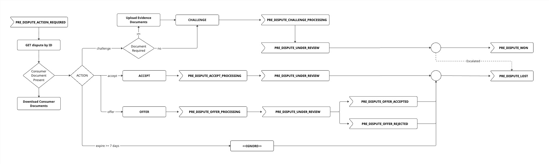 PRE_DISPUTE_ACCEPT_PROCESSINGPRE_DISPUTE_CHALLENGE_PROCESSINGPRE_DISPUTE_OFFER_PROCESSINGPRE_DISPUTE_UNDER_REVIEWPRE_DISPUTE_OFFER_ACCEPTEDPRE_DISPUTE_OFFER_REJECTEDPRE_DISPUTE_WONPRE_DISPUTE_LOST